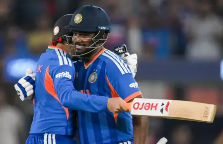 Abhishek Sharma and Sanju Samson ignited the innings with a 98-run opening stand in 7.1 overs. Abhishek’s 52 off 21 balls included the fastest knockout fifty (18 balls), a redemption arc after recent struggles.
