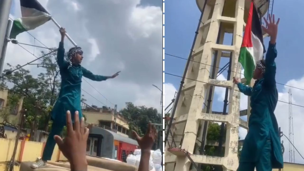 A video showing a man displaying a Palestinian flag and shouting provocative slogans at Bhagalpur railway station in Bihar has ignited a police investigation. The footage, widely shared online, has prompted immediate action from local authorities. The video depicts a man standing on a parcel trolley while others below chant controversial slogans. The man, dressed in traditional attire, is seen atop a parcel trolley, waving a Palestinian flag and shouting slogans such as “Palestine Zindabad” and “Israel Murdabad,” as well as using the slogan “Sar Tan Se Juda.” Official verification of the video’s authenticity is still pending.
