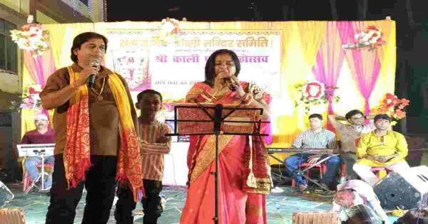 The Kali Mandir at Koderma Railway Station vibrantly celebrated its annual two-day Kali Puja festival, drawing large crowds of devotees. The festivities encompassed evening Aarti, religious ceremonies, and a grand ‘Jagran’ featuring a diverse array of artistic talents. The spiritual immersion began with Ganesh Vandana, performed beautifully by Munna Bhadani. Vinod Chaurasia energized the gathering with popular devotional songs such as ‘Chalo Bulawa Aaya Hai, Mata Ne Bulaya Hai’. The devotional concert was further enriched by the performances of Raja Chaurasia, Anuradha Singh, Kshama Sonkar, and Anand Singh. The live musical accompaniment, with Vishal Kapsime on the organ, Bablu Pandey on the dholak, and other skilled artists, enhanced the overall grandeur of the event. A highlight of the celebration was the extensive ‘Bhandara’, held after the evening Aarti, which provided blessed prasad to thousands. The devotional slogans of attendees filled the atmosphere with divine energy. Temple committee chairman Dinesh Mishra noted the event’s tradition of fostering devotion, unity, and communal harmony. Priest Vijaykant Upadhyay officiated the puja, commencing the proceedings with the sacred Jyoti of Goddess Kali.