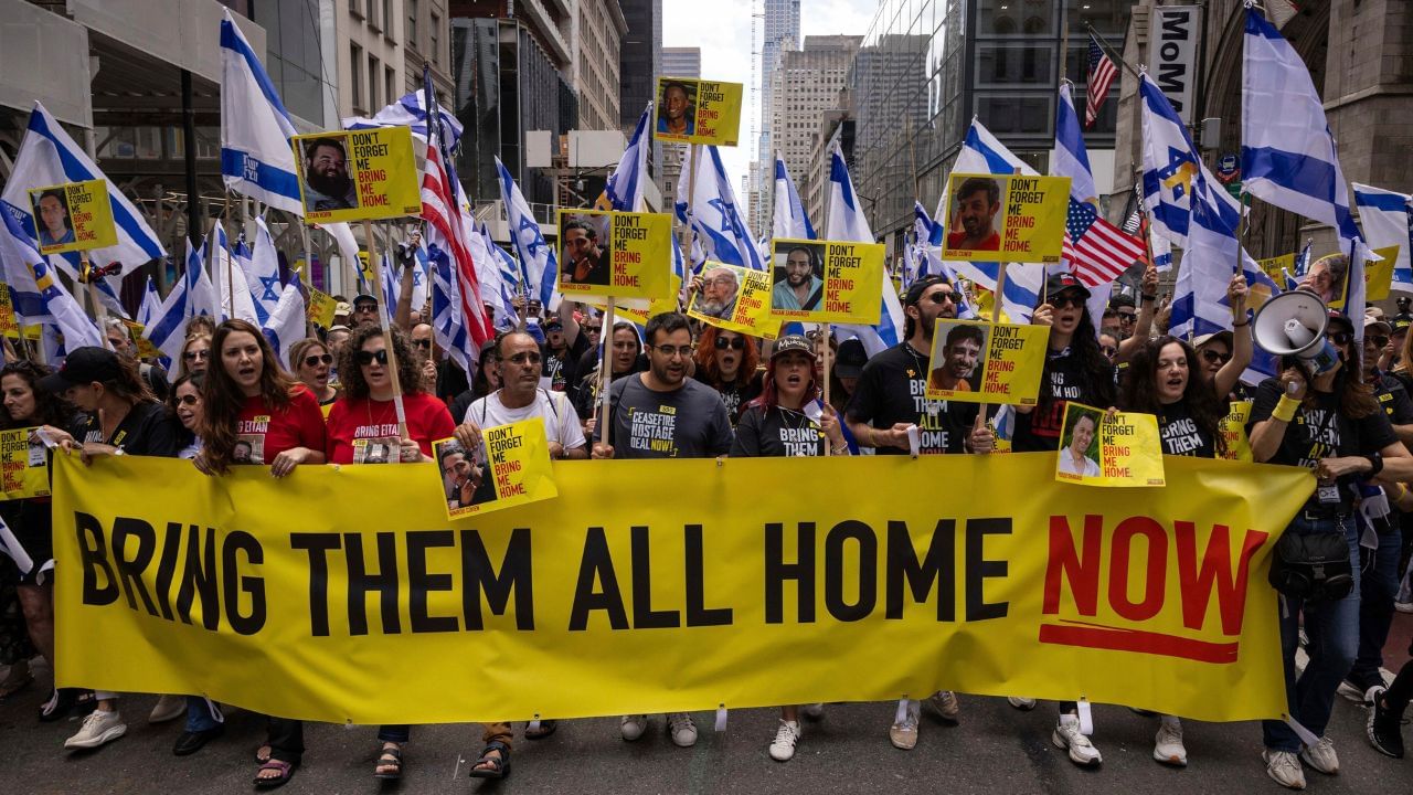 Families of hostages are demonstrating outside the official residence of Israeli Prime Minister Benjamin Netanyahu in Jerusalem. The families are protesting in front of the PM’s residence, opposing Israeli military actions in Gaza City, fearing for the safety of their loved ones held by Hamas.